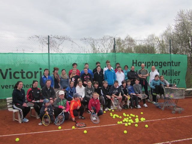 (gh) Knapp 30 Teilnehmer haben sich beim diesjährigen Schleiferlturnier der Tennisabteilung des BSV Neuburg eingetragen. Glücklicherweise hat der Wettergott mitgespielt, so dass ein lustiges und geselliges Miteinander auf und neben dem Platz stattfinden konnte. Die Jugendwartin Melanie Hafner krönte die Gewinner. Bei den Damen durfte sich die Jugendliche Seherzada Puljarga über den 1. Platz freuen und bei den Herren siegte Günter Kapaun. Für das abschließende kulinarische Wohl sorgte die Vergnügungswartin Elli Greben. (gh) Trainingsauftakt der Jugendlichen beim BSV Neuburg. Mit einer Bambini- , einer Mixed U 14-, einer Juniorinnen- sowie zwei Juniorenmannschaften startet die BSV-Jugend in die Saison 2012. Die 50 Joungster freuen sich auf die Punktspiele und nahmen voller Begeisterung beim Trainingsauftakt teil. Auch diesjährig wird einmal wöchentlich in den entsprechenden Altersklassen trainiert. Zusätzlich findet jeweils Samstags von 10 bis 12 Uhr Matchtraining für alle Jugendlichen statt. Hier werden auch "Schnupperer" von den vier Trainern um Melanie Hafner, Christian Graßl, Tom Rogler und Georg Hafner gerne integriert. TENNISPLÄTZE sind ERÖFFNET Das komplette Abteilungsteam wünscht Euch viel ERFOLG und SPASS für die Saison 2012. Vor dem Spaß kommt die Arbeit Beim ersten Arbeitseinsatz der Tennisabteilung vom BSV-Neuburg beteiligten sich über 30 aktive Tennisspieler. Besonders lobenswert war das Engagement der vielen Jugendlichen, die tatkräftig die Vorbereitungen der sieben Tennisplätze für die kommende Saison unterstützten. Mit fünf Jugend- und zwei Erwachsenenmannschaften, die heuer an der Punktrunde teilnehmen, werden sicherlich alle Plätze sehr strapaziert. Die nächsten Arbeitseinsätze sind täglich ab 16.00 Uhr und am Samstag ab 10.00 Uhr.