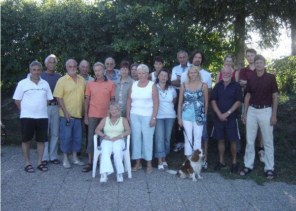 | (gh) Bei der letzten aktiven Veranstaltung der Tennisabteilung vom BSV Neuburg beteiligten sich 26 Tennisbegeisterte (leider nicht alle auf dem Bild). Bei diesem Turnier, bei dem es hauptsächlich um den Spaß am "Weißen Sport" ging, wurden die Paarungen zusammengelost. Am Ende der sechs Runden (je 25 Minuten) gab es eigentlich nur Sieger. Die Abteilungsleiterin Sigrid Stemmer (stehend, 5. v. links) prämierte während der anschließenden Siegesfeier (die von den beiden Vergnügungswartinnen Elli Greben und Simone Vogelsang bestens vorbereitet wurde) Christine Stempfle (nicht auf dem Bild), Anita Kreil (stehend 4. v. links), Sebastian Kieslich (stehend 4. v. rechts) und Milos Mares (2. Abteilungsleiter, stehend 1. v. rechts) mit kleinen Geschenken. |
