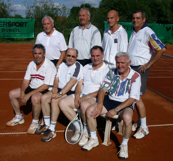 Saison 2009 Souverän zum 2. mal Meister (gh) Schon im 2. Jahr unbesiegt feiern die Herren 55 von der Tennisabteilung des BSV Neuburg erneut den Meistertitel. Nachdem die Senioren den möglichen Aufstieg im letzten Jahr ablehnten, wollen sie nach dieser Saison das Unternehmen „Bezirksklasse 1“ in Angriff nehmen. Hindernisgründe dafür waren bisher die weiten Anfahrtswege und Personalmangel, da in dieser Liga 6-er Mannschaften Pflicht sind. Vier mal schickten die Tabellenersten in dieser Saison die Gegner (Donauwörth, Harburg, Langweid und Meitingen) mit nur einem Ehrenpunkt nach Hause. Zweimal gab es sogar die 6:0 Höchststrafe (Klosterlechfeld und Augsburg-Hochzoll).